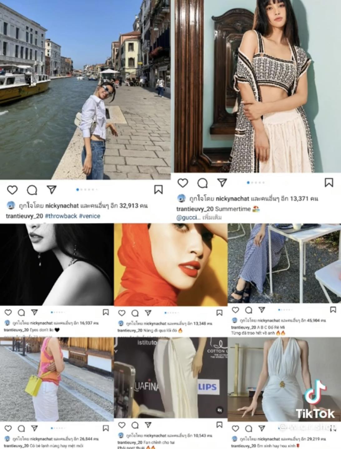 Dựa trên những hình ảnh trên trang cá nhân của Tiểu Vy, cộng đồng mạng nhận thấy nàng hậu này đã có nhiều điều khá trùng hợp với nam diễn viên Thái Lan. Theo đó, cô nàng này đã mặc một chiếc áo giống hệt Nicky Nachat vừa đăng trước đó, đồng thời cả hai cũng check-in cùng lúc nhiều địa điểm ở Thái.