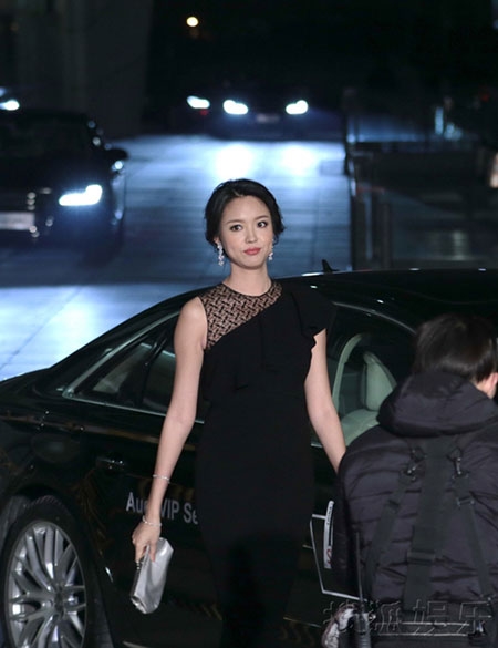 Dù có bầu nhưng Trương Tử Lâm vẫn chạy show sự kiện. Hôm 30/12, cô xuất hiện tại một hoạt động ở Thượng Hải. Trong chiếc váy điệu đà, Hoa hậu Thế giới khoe khéo bụng bầu đã nhô cao rõ rệt. Mang thai 3 tháng, Tử Lâm cũng mập lên trông thấy. |