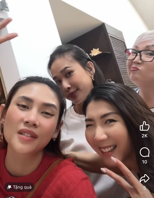 Cô còn bày tỏ sự yêu mến, liên tục ẵm bế và thơm má con trai đầu lòng của Hoa hậu Dương Mỹ Linh. Sau thời gian ngưng hoạt động nghệ thuật trong showbiz Việt, sự xuất hiện của người đẹp Mỹ Linh thu hút sự chú ý của cư dân mạng. Nàng hậu sinh năm 1984 vẫn được khen ngợi nhan sắc mặn mà, tươi tắn.