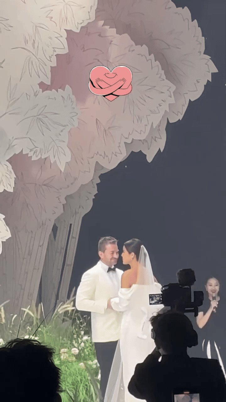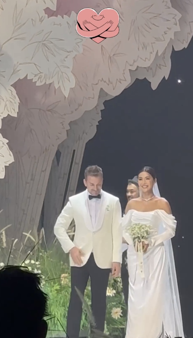 Cô dâu Minh Tú và chú rể Christopher lộ diện trong bộ lễ phục trắng thanh lịch. Cả hai chia sẻ những cảm xúc và gửi lời cảm ơn chân thành tới các khách mời. Trên sân khấu, Minh Tú nói tiếng Đức và Chris nói tiếng Việt, cả hai dùng ngôn ngữ mẹ đẻ của đối phương để trao nhau những lời yêu thương đầy ý nghĩa.