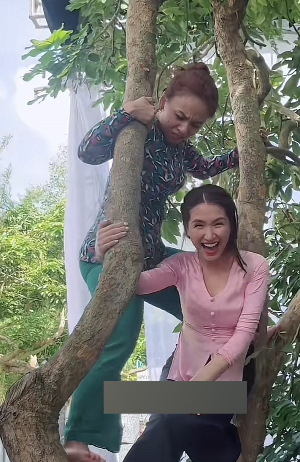 Tất cả những màn nhảy nhót trong đám cưới Puka, Gin Tuấn Kiệt đều không thể thiếu sự góp mặt của giọng ca Bắc Ninh. Đáng chú ý, cô nàng còn cùng diễn viên Ngọc Phước leo cả lên cây để cổ vũ các tiết mục khác dù đang mặc áo bà ba.
