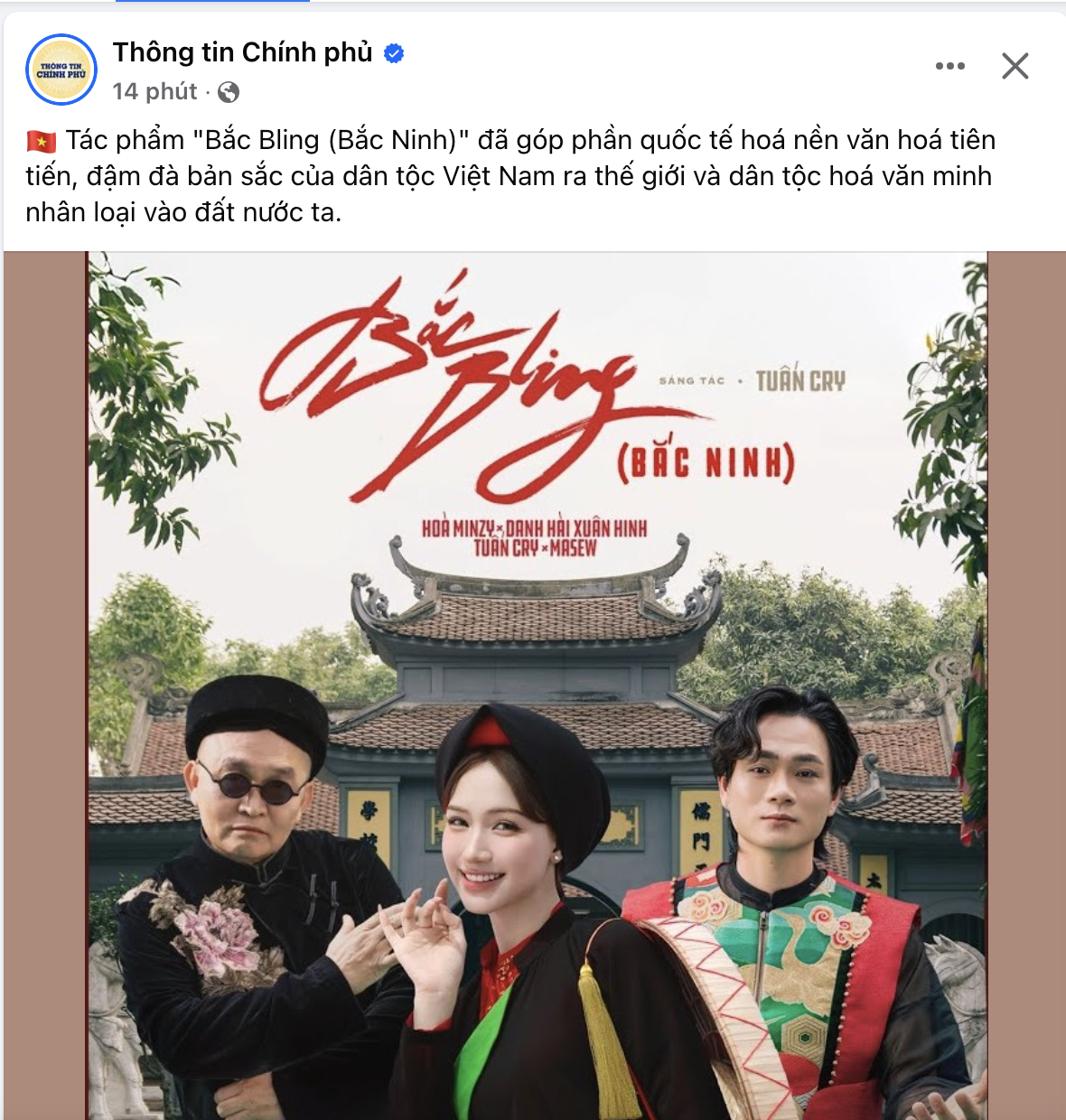 Trên trang chính thức của Thông tin Chính phủ, MV Bắc Bling cũng được dành lời khen ngợi với dòng trạng thái khẳng định: Tác phẩm “Bắc Bling (Bắc Ninh)" đã góp phần quốc tế hóa nền văn hóa tiên tiến, đậm đà bản sắc của dân tộc Việt Nam ra thế giới và dân tộc hóa văn minh nhân loại vào đất nước ta.