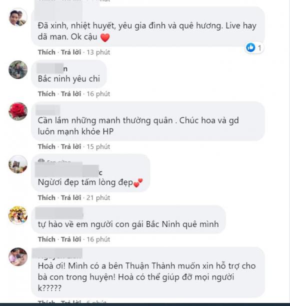 Tấm lòng hướng về Bắc Ninh của giọng ca "Rời bỏ" nhận được nhiều sự khen ngợi: "Em ở Bắc Ninh đây Hoà yêu ơi và cũng đang trong khu vực có dịch. Cảm ơn chị thật nhiều thật nhiều", "Thương lắm, mong tất cả mọi người nước ta sẽ cùng nhau bình an vượt qua", "Bắc Ninh yêu chị", "Tự hào về em người con gái Bắc Ninh quê mình", "Cảm ơn tấm lòng của ca sĩ Hòa Minzy"....