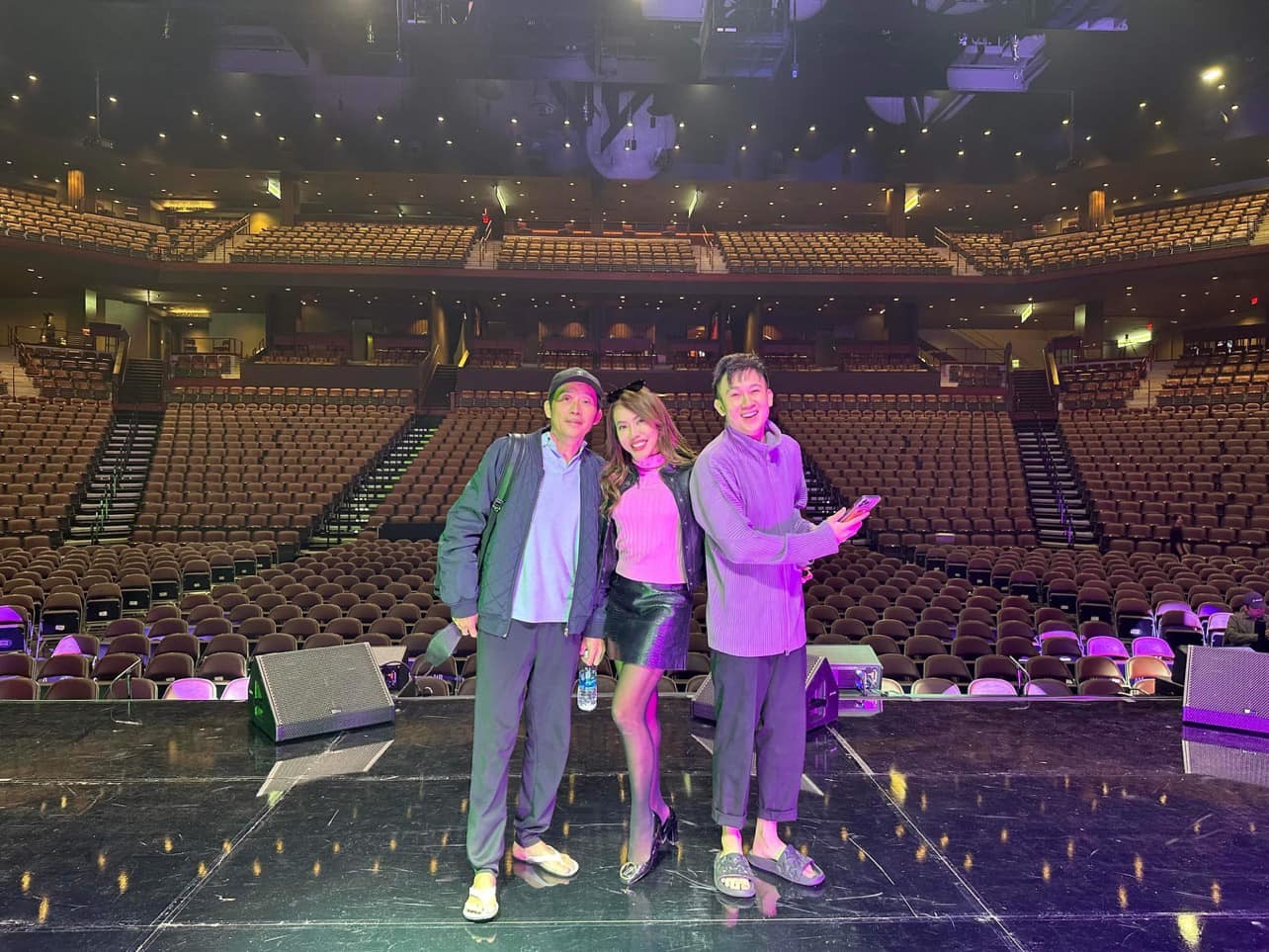 Trong lần trở lại Mỹ này, Hoài Linh gặp lại hai người em ruột là ca sĩ Phương Trang và ca sĩ Dương Triệu Vũ. Cả ba sẽ có dịp diễn chung trên một sân khấu. Em trai nam danh hài hào hứng đăng ảnh cùng đi tổng duyệt sân khấu với Hoài Linh và chia sẻ: "Sân khấu đã sẵn sàng chào đón 4000 khán giả, nghe nói hôm nay đã bán hết vé và không còn chỗ cho nhiều vị khách muốn xem show thứ Bảy. Show Chủ nhật cũng còn ít chỗ thôi, vui quá vui".