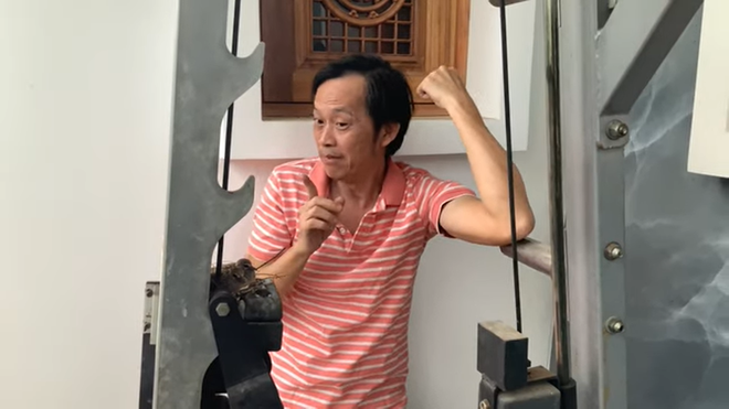 Nói rồi, Hoài Linh dẫn khán giả ra xem khu tập tạ riêng của anh trong nhà thờ Tổ, ở ngay cạnh vườn cây. Điều này khiến nhiều người bất ngờ, ít ai biết Hoài Linh cũng chịu khó tập tạ đến vậy.