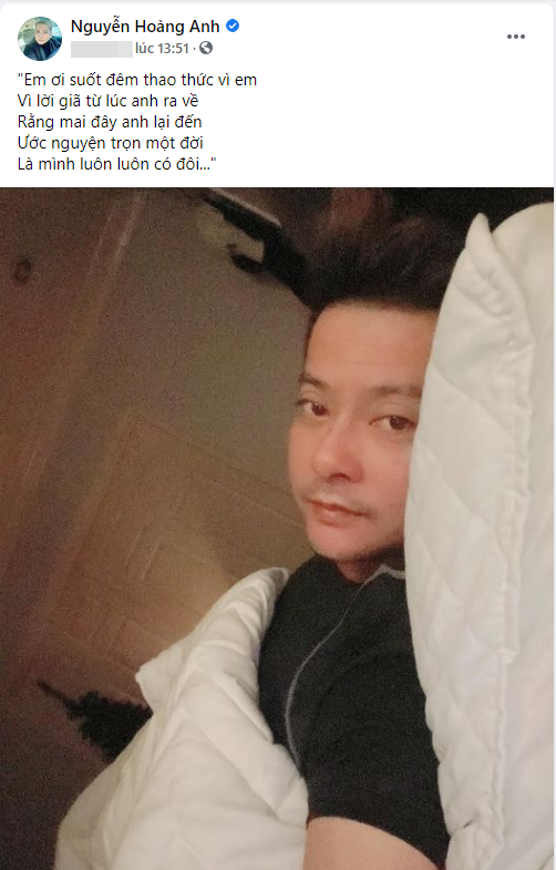 Mới đây, Hoàng Anh và bạn gái tin đồn gây bất ngờ khi cùng đăng ảnh "giường chiếu" vào một thời điểm. Hoàng Anh "thả thính" bằng lời bài hát: "Em ơi suốt đêm thao thức vì em, vì lời giã từ lúc anh ra về. Rằng mai đây anh lại đến, ước nguyện trọn một đời, là mình luôn luôn có đôi...".