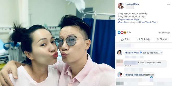 Có thể nói Hoàng Bách là sao Việt hiếm hoi không ngại ngần cập nhật liên tục hành trình sinh con lên mạng xã hội. Trước giờ G, nam ca sĩ còn hóm hỉnh: “Đang đêm, đi đâu, đi đâu đấy. Đang đêm, đi đẻ, đi đẻ đây”. Sau đó, anh cũng đăng hình ảnh nắm tay bà xã cùng dòng chú thích: “Cố lên” để động viên Thanh Thảo vượt cạn an toàn.