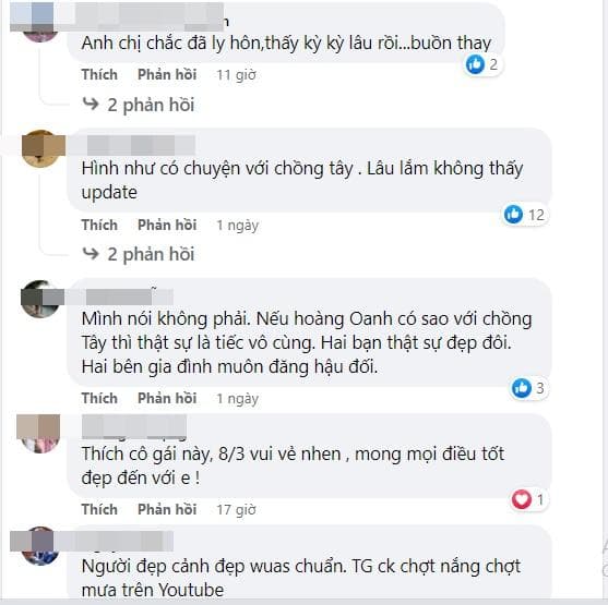 Dưới bình luận, một số tài khoản mạng thẳng thắn đặt câu hỏi liên quan tới hôn nhân của Hoàng Oanh. Không né tránh, nữ MC đáp: "Ây cha chỉ là những câu nói hay chạm lòng người nên mình chia sẻ thôi cả nhà ơi". Qua câu nói của MC Hoàng Oanh phần nào cho thấy hôn nhân của cô và Jack vẫn đang tốt đẹp chứ không trục trặc như đồn đại.