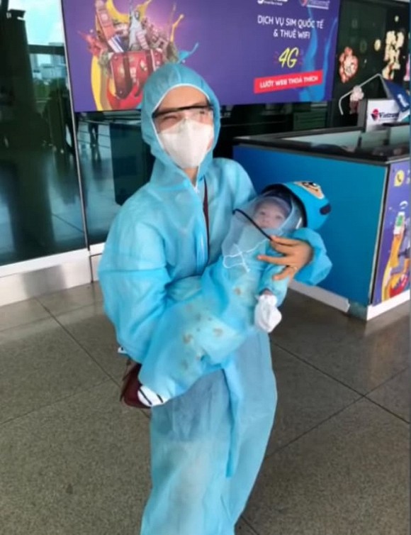 Khi đường bay quốc tế bắt đầu hoạt động trở lại, Hoàng Oanh đã quyết định đưa con sang Singapore để đoàn tụ với bố. Cô chuẩn bị đầy đủ trang phục bảo hộ, khẩu trang, găng tay, mũ chống giọt bắn... để bảo vệ sức khỏe cho bản thân và quý tử. Dẫu vậy, người đẹp cũng không thể tránh khỏi tâm trạng hồi hộp, lo lắng trong chuyến đi nước ngoài. Hoàng Oanh chia sẻ: "Ngồi trên chuyến bay mình chỉ mong được đến nơi nhanh nhất có thể thôi! Khi máy bay cất cánh và chao đảo, con nhỏ chưa khóc mà mẹ đã khóc vì sợ rồi. Chỉ mong con luôn bình an và không sợ hãi gì cả!".
