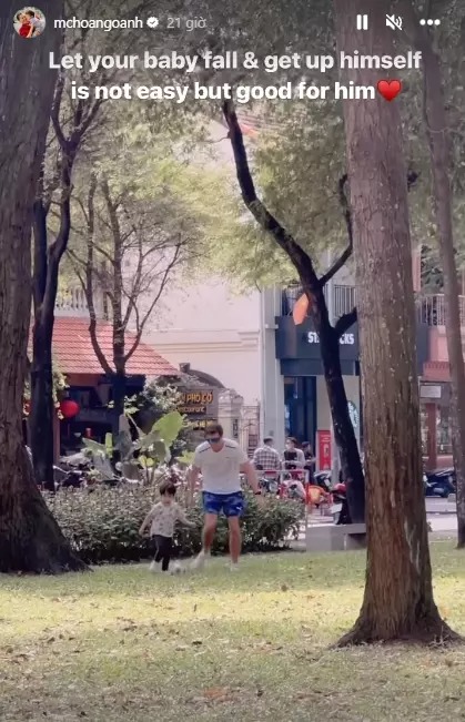 Mới đây, Hoàng Oanh chia sẻ khoảnh khắc cùng chồng cũ đưa con đi chơi. Trong clip, nữ MC rạng rỡ ngồi nhìn con trai chơi đá bóng cùng bố.
