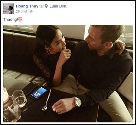 Quán quân "Vietnam's Next Top Model 2011" vừa chỉ sẻ một bức ảnh chụp cùng bạn trai ngoại quốc điển trai. Trong bức ảnh, cả hai đang nhìn nhau say đắm. Được biết bạn trai của Hoàng Thùy là người Đức làm việc tại Việt Nam và hơn cô 12 tuổi.