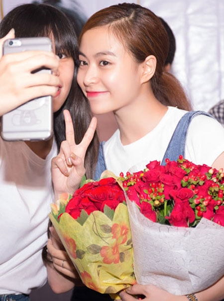Cô vui vẻ chụp hình cùng mọi người. |