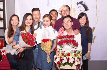 Nữ ca sĩ bất ngờ vì người hâm mộ mở tiệc mừng tuổi mới khi cô đến giao lưu cùng họ chiều 9/8.