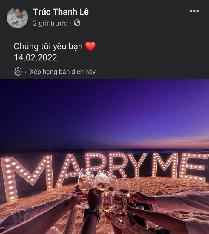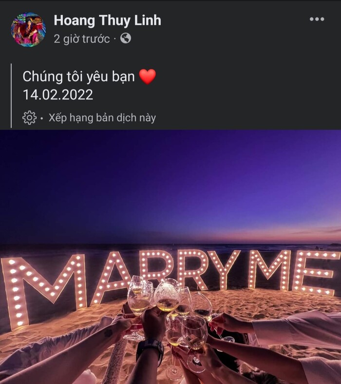 Tối 15/2, mạng xã hội xôn xao thông tin Gil Lê cầu hôn Hoàng Thùy Linh. Cụ thể, trên trang cá nhân của Hoàng Thùy Linh và Gil Lê đều đăng tải một bức ảnh tại bãi biển, dải đèn led mang nội dung "Marry Me" vô cùng nổi bật. Chính điều này đã khiến cho nhiều người đặt ra nghi ngờ về việc Gil Lê đã tổ chức một buổi tiệc lãng mạn để cầu hôn Hoàng Thùy Linh.
