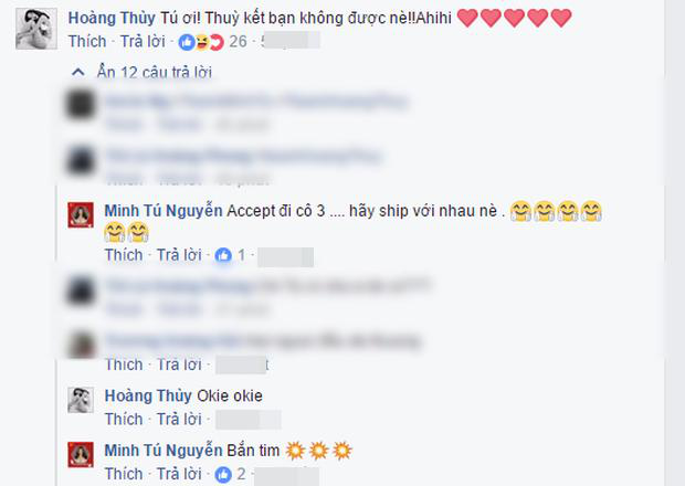 Ngay sau đó, một số cư dân mạng liền réo gọi tên của người mẫu Hoàng Thùy. Nguyên do vì thời điểm cùng làm huấn luyện viên The Face - Gương mặt thương hiệu 2017, Hoàng Thùy từng chủ động kết bạn Facebook với Minh Tú. Đặc biệt, netizen còn soi ra ở thời điểm đó, Hoàng Thuỳ và Minh Tú đã không còn là bạn bè của nhau trên mạng xã hội.