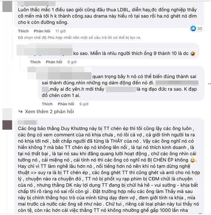 Dù chưa rõ thực hư nội tình ra sao nhưng mới đây trên trang cá nhân Phạm Duy Khương, nhiều cư dân mạng đã thể hiện sự bức xúc, tấn công thô bạo bằng ngôn từ vào các bài đăng cũ của nam diễn viên.
