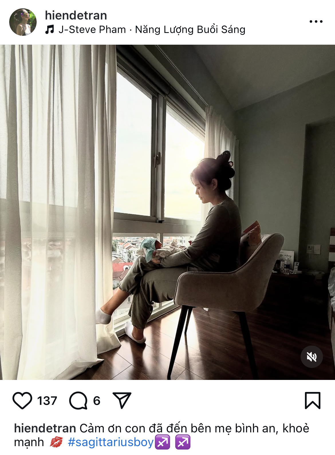 Vào cuối tháng 12 năm ngoái, trên trang cá nhân, Trần Hiền chia sẻ khoảnh khắc bế một em bé sơ sinh kèm thông báo: "Cảm ơn con đã đến bên mẹ bình an, khỏe mạnh". Nữ người mẫu cho biết nhóc tỳ thứ 2 là một bé trai, hiện cô đang ở cữ tại gia. Trong thời gian mang bầu và sinh con, Trần Hiền hạn chế lộ diện và cũng ít cập nhật mạng xã hội.