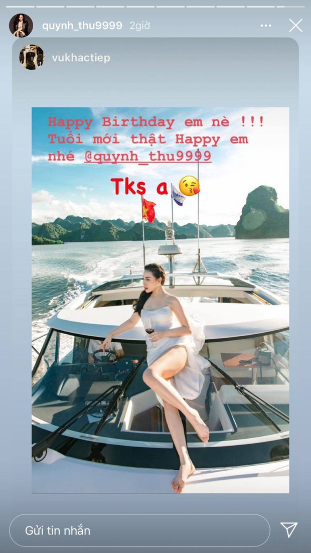Là nhân vật chính của buổi tiệc, Quỳnh Thư diện chiếc váy ngắn màu đỏ nổi bật, được cắt xẻ táo bạo để khoe trọn đôi chân dài trứ danh cùng body nuột nà hậu giảm cân. Đáng chú ý, khoảnh khắc Quỳnh Thư và cô bạn thân 15 năm đọ sắc chung khung hình khiến dân tình chú ý hơn cả. Mặc dù là "nữ hoàng nội y" có 3 vòng nóng bỏng, nhưng lần này Ngọc Trinh đã bị vòng 1 ngồn ngộn và gợi cảm của Quỳnh Thư lấn át. 2 mỹ nhân hào hứng, quẩy hết cỡ trong ngày đặc biệt để chứng minh tình cảm tốt đẹp giữa showbiz lắm thị phi.