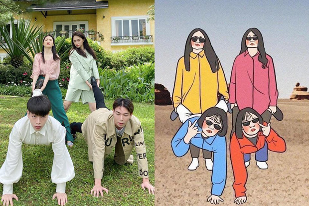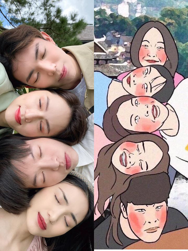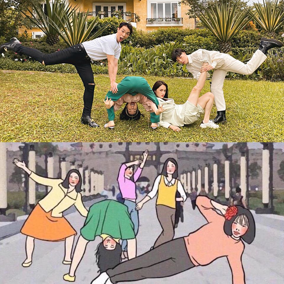Mới đây, bốn chị em vừa tung ra loạt ảnh nhóm lấy ý tưởng từ những cách tạo dáng bá đạo của một hội bạn thân khi đi du lịch khiến dân tình được một phen chao đảo. Mặc dù những tấm hình gốc đã rất hài hước nhưng vào tay Đức Phúc, Erik, Hòa Minzy và Hương Giang, bộ ảnh còn trở nên thú vị và có hồn hơn gấp nhiều lần. Điều đáng nói, dù là phái nữ nhưng Hòa Minzy và Hương Giang lại là người "cân" mọi dáng khó, bất chấp luôn hình tượng ca sĩ và hoa hậu để phối hợp ăn ý với hai cậu em Đức Phúc và Erik.