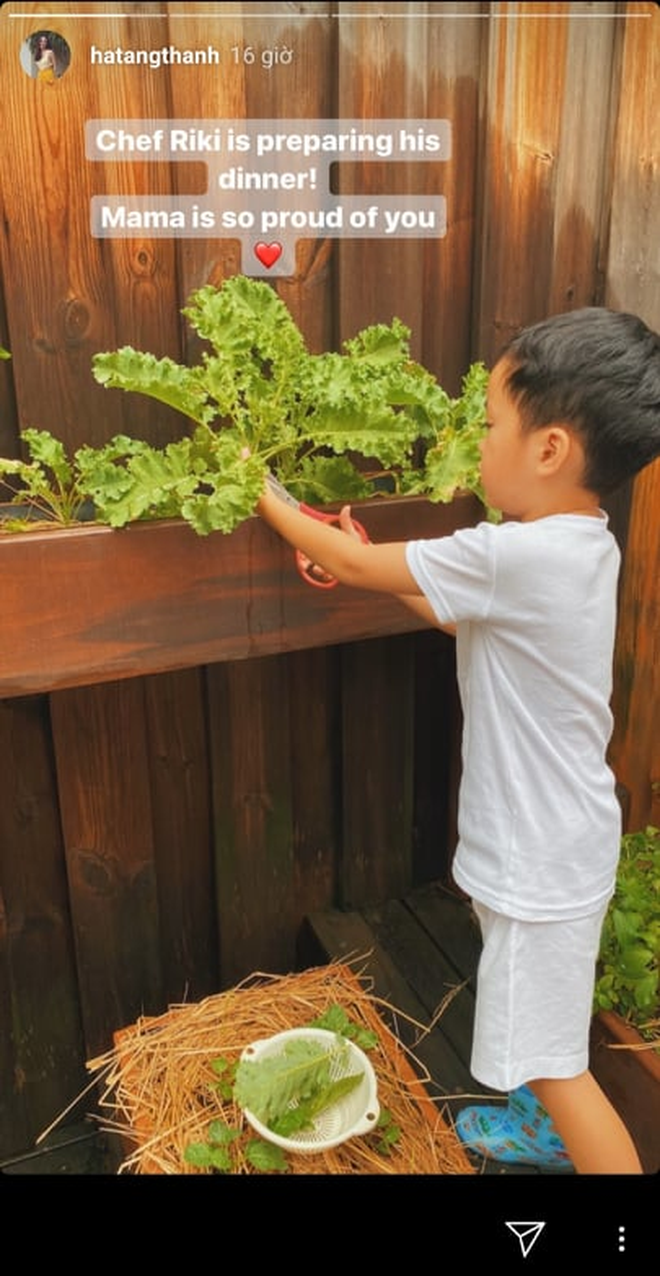 Mới 5 tuổi nhưng quý tử nhà Hà Tăng đã có niềm đam mê nấu nướng giống mẹ, thường xuyên vào bếp nhặt rau, thái củ quả và chăm vườn… Không chỉ vậy, dù là rich kid chính hiệu song cậu bé vẫn sẵn sàng vẽ tranh trên bìa carton cứng để tiết kiệm thay vì giấy mỹ thuật chuyên dụng.