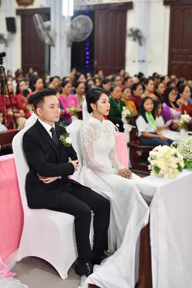 Xuất hiện trong tà áo dài trắng, make up nhẹ nhàng, tân nương kém 4 tuổi của Phan Mạnh Quỳnh chiếm trọn spotlight với nhan sắc đỉnh cao, gương mặt xinh xắn nổi bật trong bộ áo dài. Đặc biệt, Khánh Vy còn khéo khoe eo thon và đường cong gợi cảm khi sánh bước bên chồng vào lễ đường. Không hổ danh là hotgirl đình đám mạng xã hội có 160 nghìn người theo dõi, Khánh Vy đã chứng minh là cô dâu đẹp nhất tối nay. Có vợ vừa đẹp, giàu lại giỏi, sướng nhất Phan Mạnh Quỳnh rồi!