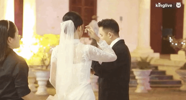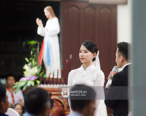 Phan Mạnh Quỳnh và Khánh Vy tiến vào lễ đường, cô dâu xinh như công chúa trong váy cưới trắng tinh