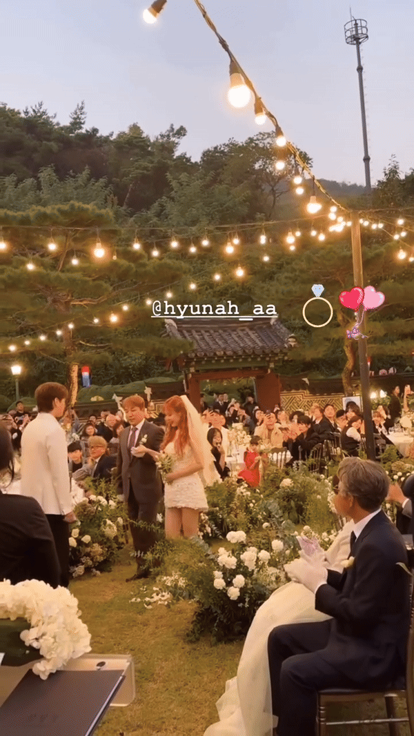 Vào ngày 11/10, Hyuna và Yong Junhyung đã tổ chức hôn lễ sau chưa tròn 1 năm công khai hẹn hò. Hôn lễ của cặp đôi được tổ chức ở Samcheonggak Ilhwadang, quận Seongbuk, Seoul. TenAsia đưa tin đám cưới chỉ mời gia đình và người quen thân thiết, không có nghi thức cầu kỳ hay bài hát chúc mừng.