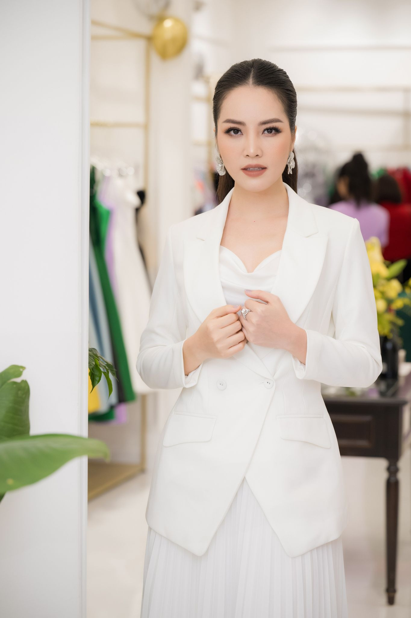 Cũng như Hồng Diễm, Á hậu Thuỵ Vân nhờ trợ lý mang theo cả vali nhỏ chứa giày, phụ kiện đến sự kiện vì muốn hình ảnh của mình hoàn hảo trong mỗi lần thay trang phục mới. Giám khảo của Hoa hậu Việt Nam 2022 có 3 lần biến hoá phong cách với 3 bộ cánh khác nhau.