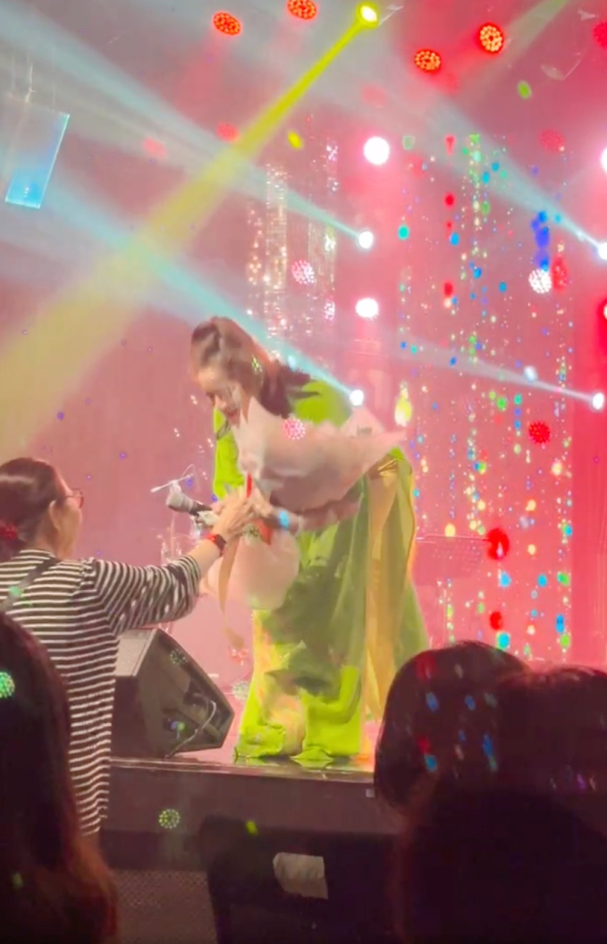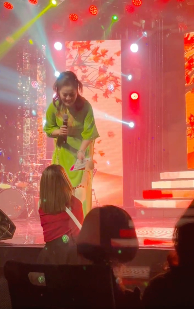 Sau khi Hồng Loan hát, khán giả ùa lên sân khấu tặng tiền và quà. Con gái cố nghệ sĩ Vũ Linh vui vẻ đón nhận và không quên cúi đầu cảm ơn khán giả. Có thể thấy, sau bao nhiêu chuyện đã xảy đến, Hồng Loan càng được khán giả yêu thương, bảo vệ nhiều hơn.