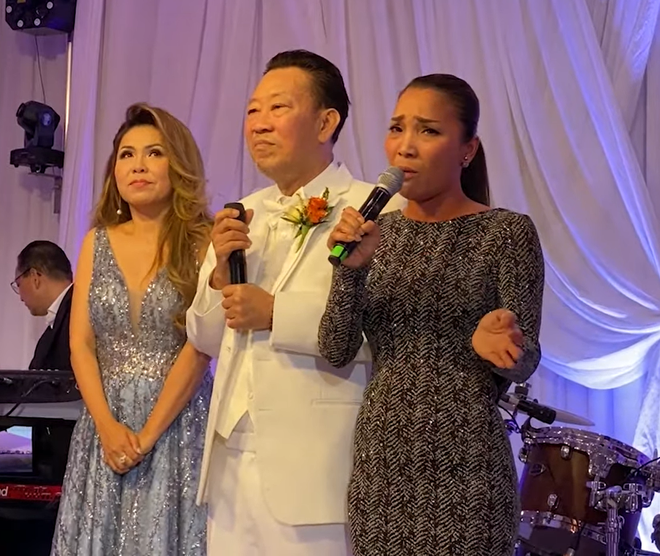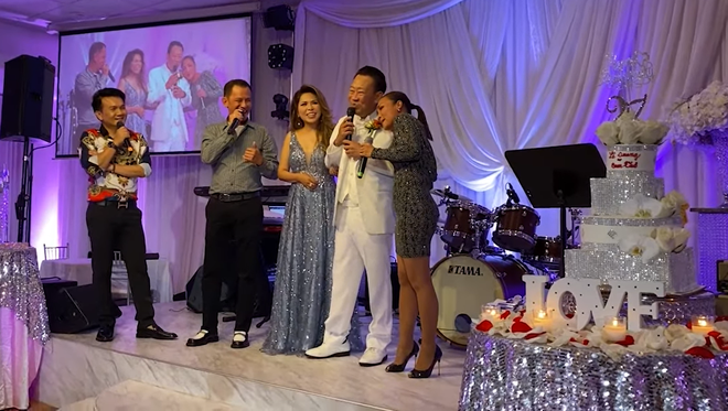 "Hôm nay tôi phải bay từ Dallas tới tận Cali để dự tiệc kỷ niệm ngày cưới này. Dù rất xa nhưng tôi vẫn phải tới bằng được vì tôi rất quý anh Lê Quang. Lúc này, khoảng cách không còn quan trọng, quan trọng là tình thương anh Lê Quang dành cho tôi suốt 25 năm qua.