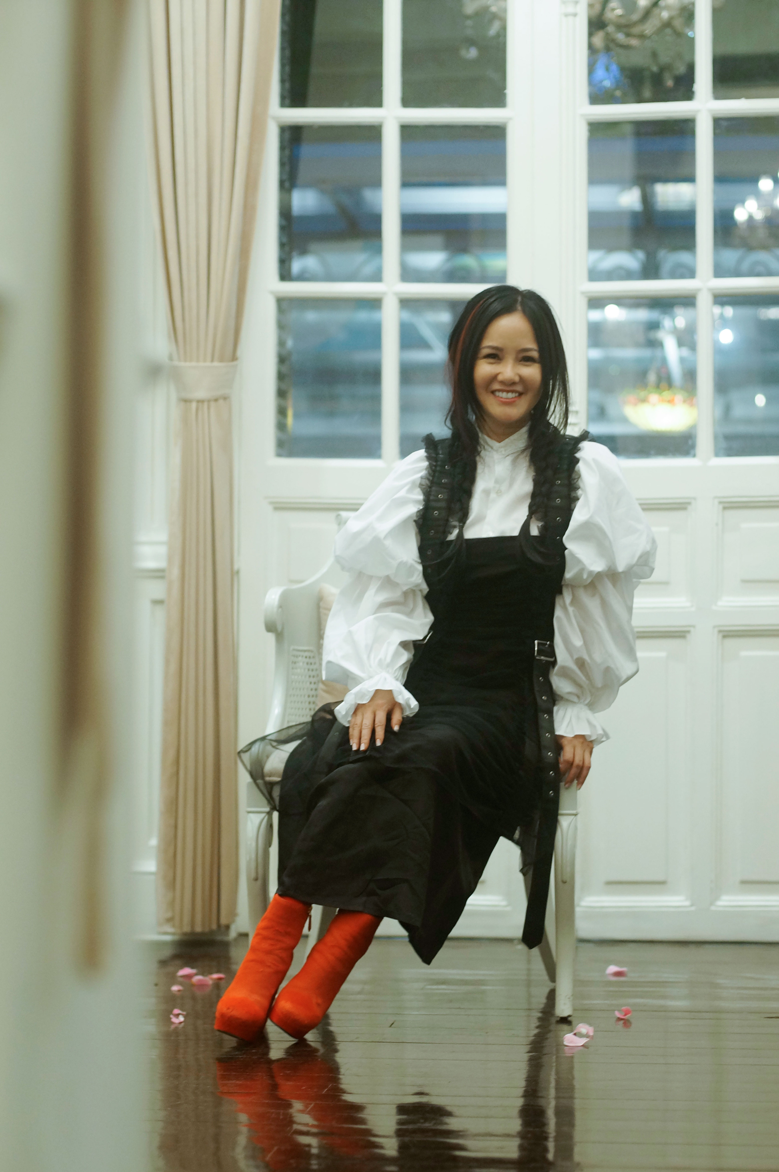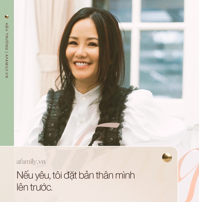 Giữa nhưng câu chuyện cũ chuyện nay, chị cười vui vẻ khi chúng tôi nói về 2 chữ tình yêu. Tôi bảo chị, "Đen Vâu bảo 'Ta cần tình yêu vì tình yêu làm cho ta trẻ'", chị hài hước đáp lời: "Không cần tình yêu tôi vẫn trẻ và đẹp. Nói đùa thế thôi, chứ đúng rồi, ai cũng cần tình yêu, đó không chỉ là tình yêu nam nữ, là tình yêu với cuộc đời, tình yêu với âm nhạc. Ngay cả nghệ sĩ ra một sản phẩm âm nhạc cũng phải cần tình yêu chứ. Đó chính là ý nghĩa của 2 từ tình yêu".