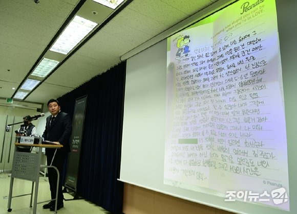 Mở đầu buổi họp báo, để chứng minh Kim Soo Hyun đã qua lại với Kim Sae Ron khi cô còn vị thành niên, luật sư Bu Ji Seok đã đăng tải đoạn tin nhắn được cho là từ tài tử hạng S gửi nữ diễn viên trẻ vào năm 2016. Thời điểm này, Kim Sae Ron 16 tuổi.