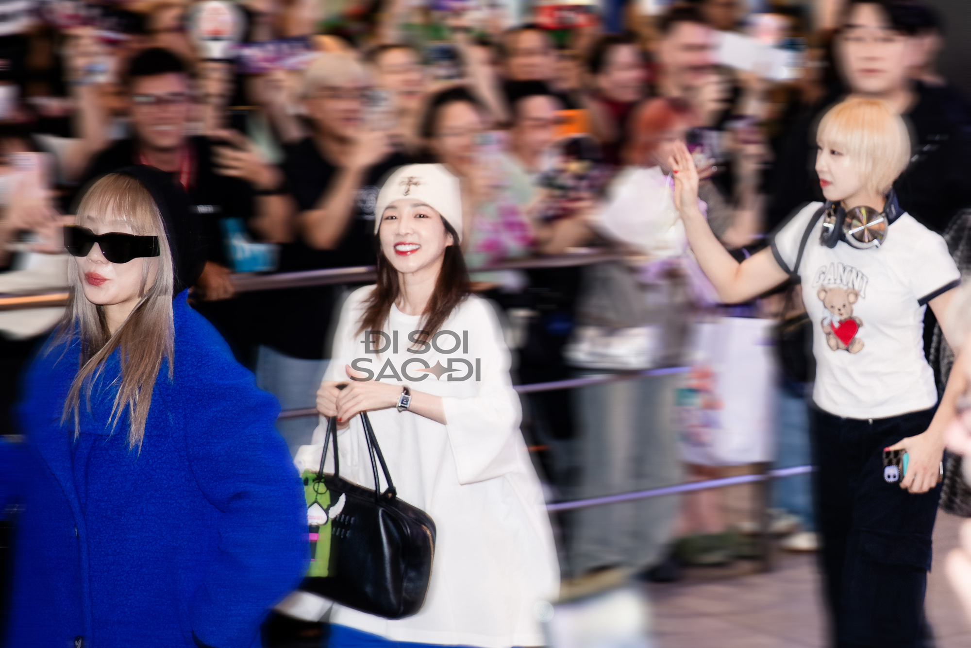 Dù hạ cánh sau chuyến bay dài nhưng các thành viên 2NE1 vẫn rất tươi tắn, xinh đẹp và giàu năng lượng. CL cá tính chuẩn "chị đại", Park Bom mang thần thái diva, còn Minzy và Dara trắng phát sáng, xinh đẹp hút mắt. Họ không ngừng thân thiện vẫy tay chào hỏi fan tại sân bay trước khi lên xe trở về khách sạn. Người hâm mộ Việt Nam vỡ òa khi được gặp các thành viên 2NE1 bằng xương bằng thịt sau hơn 10 năm chờ đợi.