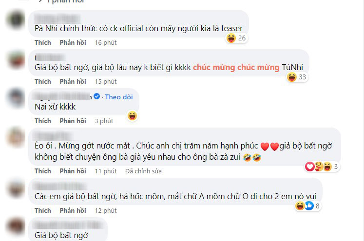 Dưới bài viết, đông đảo sao Việt và cư dân mạng đã gửi lời chúc mừng đến Anh Tú - Diệu Nhi, thậm chí còn bảo nhau giả vờ bất ngờ cho 2 nhân vật chính vui. Sở dĩ dân tình có trò đùa này là bởi vì Diệu Nhi - Anh Tú đã ở bên nhau 7 năm, dù vài năm trở lại đây cả hai không còn công khai xuất hiện hay nhắc đến đối phương nữa nhưng vào những dịp đặc biệt, Diệu Nhi - Anh Tú vẫn có những cách chúc mừng hay kỷ niệm rất riêng mà ai cũng ngầm hiểu rằng đôi trai tài gái sắc của Vbiz vẫn vô cùng mặn nồng.