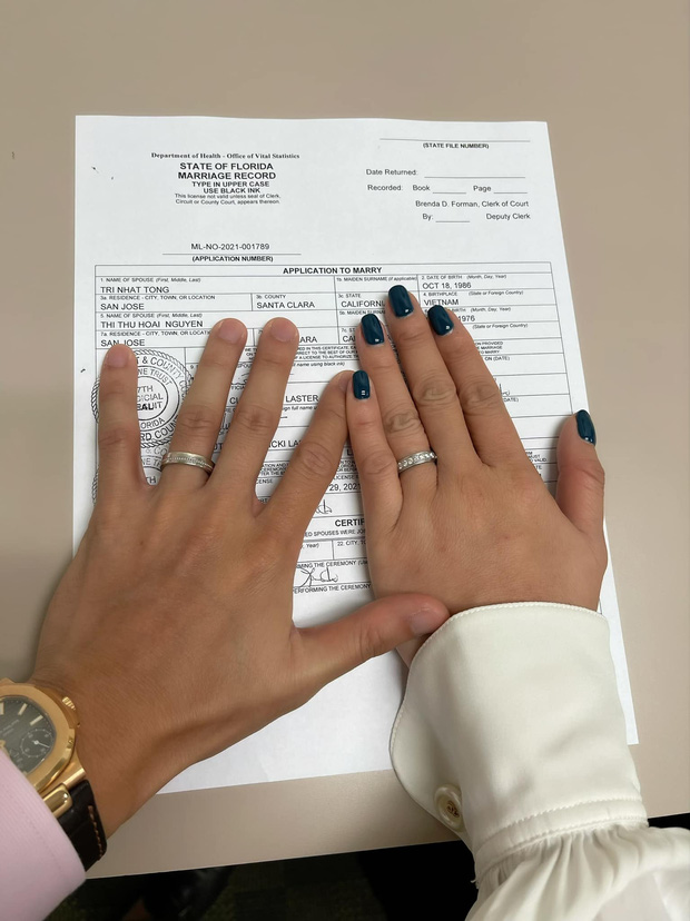 Không giấu được niềm vui trong ngày đặc biệt, Hoa hậu Thu Hoài chia sẻ trên Facebook cá nhân: "Ngày tôi trở thành vợ người ta! Trong mơ cũng không nghĩ tới, ngày tôi chính thức trở thành vợ người ta lại tới một cách đột ngột và… khó tả như vậy. Không kịp chuẩn bị bất cứ thứ gì, không xem, không lựa ngày tháng, không luôn cả những thủ lục nghi lễ, tất cả những gì tôi và Trí làm chỉ là ký lên tờ giấy đăng ký kết hôn. Thậm chí chỉ cách đó ít tiếng thôi, cả hai đều chưa hề nghĩ câu chuyện này và như thường lệ, gây nhau một chút vào bữa sáng!