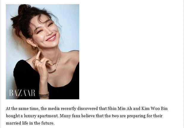 Vào ngày hôm nay (4/4), chương trình Rumor Has It của đài Channel A đã tiết lộ Kim Woo Bin - Shin Min Ah dự định sẽ kết hôn vào năm nay, sau 6 năm bên nhau. Phóng viên Choi Jung Ah nghe được tin từ người trong ngành rằng cặp đôi đã chuẩn bị cho hôn lễ.