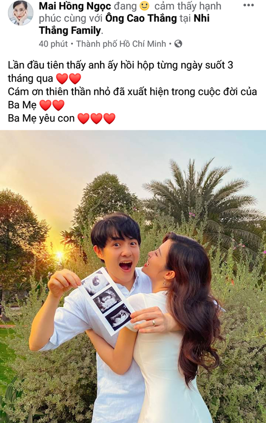 Cách đây ít phút, cả Đông Nhi và ông xã lại khiến dân tình bất ngờ tột độ hệt như lần tuyên bố kết hôn khi chính thức xác nhận đang chuẩn bị chào đón thành viên mới trong gia đình. Trong khi Ông Cao Thắng chỉ đăng tải bức ảnh kèm dòng chú thích ngắn gọn nhưng súc tích: "Ba Mẹ yêu con" thì bà xã của anh lại hạnh phúc chia sẻ: "Lần đầu tiên thấy anh ấy hồi hộp từng ngày suốt 3 tháng qua. Cám ơn thiên thần nhỏ đã xuất hiện trong cuộc đời của Ba Mẹ. Ba Mẹ yêu con".