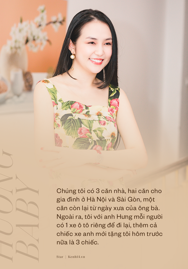 Chúng tôi có 3 căn nhà, hai căn cho gia đình ở Hà Nội và Sài Gòn, một căn còn lại từ ngày xưa của ông bà. Ngoài ra, tôi với anh Hưng mỗi người có 1 xe ô tô riêng để đi lại, thêm cả chiếc xe anh mới tặng tôi hôm trước nữa là 3 chiếc.