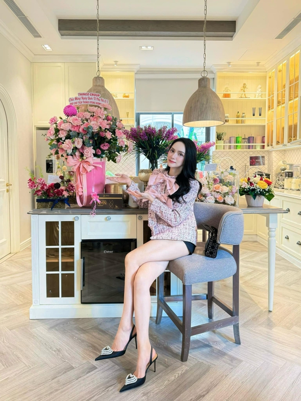 Trên trang cá nhân, Hương Giang đăng tải loạt ảnh mới trong dịp lễ 8/3. Nàng hậu xuất hiện xinh đẹp với bộ trang phục đơn giản mà sang trọng, khéo léo khoe đôi chân dài thon thả. Trong ảnh mới, Hương Giang cũng tiện "flex" một góc nhà với đủ các giỏ hoa được tặng trong ngày đặc biệt và đính kèm theo đó là dòng trạng thái hé lộ chuyện tình cảm hiện tại.