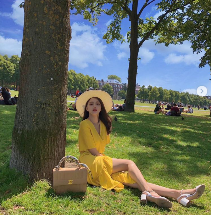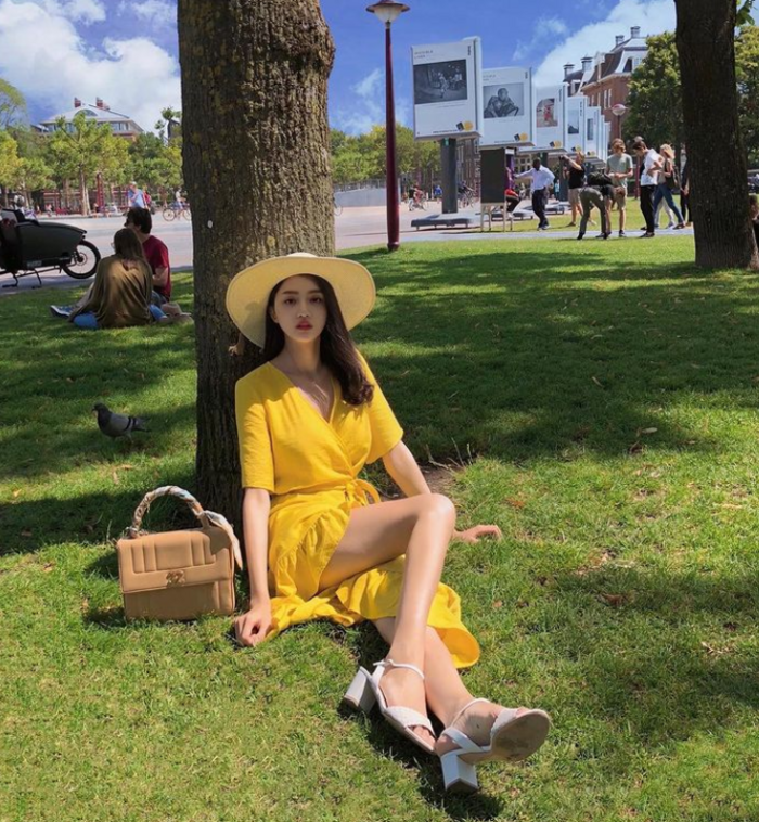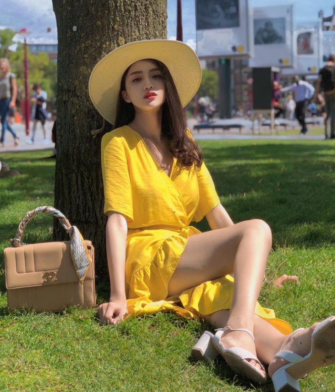 Người đẹp chia sẻ khoảnh khắc ngồi "thả dáng" trên bãi cỏ trong một khu đô thị có đông người qua lại. Không cần phải quá lộng lẫy, thần thái sắc sảo cùng trang phục nhẹ nhàng, phù hợp với background "xịn xò" phía sau cũng đã đủ giúp nàng Hậu nổi bật giữa đám đông.