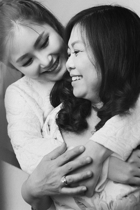 Hình ảnh Hương Tràm hạnh phúc ôm mẹ. |