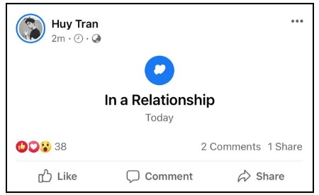 Trên trang cá nhân của Huy Trần, anh chàng xác nhận bản thân là "hoa đã có chủ" nhưng dòng trạng thái này cũng bị gỡ bỏ như bức ảnh trên.