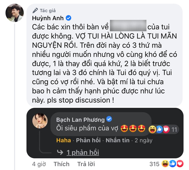 Ở dưới phần bình luận, netizen còn nhắc đến scandal Huỳnh Anh bị tố nợ 200 triệu không trả. Theo đó, vào ngày 14/7, một người đàn ông tên M.Q từng tố nam diễn viên mượn 200 triệu đồng từ tháng 4/2021 mà không tính lãi. Theo người này, dù Huỳnh Anh khẳng định sẽ trả số tiền trên vào 20/4 nhưng sau 3 tháng vẫn chưa trả đủ số tiền ấy. Đến nay, khi netizen nhắc lại scandal này ngay dưới phần bình luận, Huỳnh Anh liền đáp: "Trả hết lâu rồi em".
