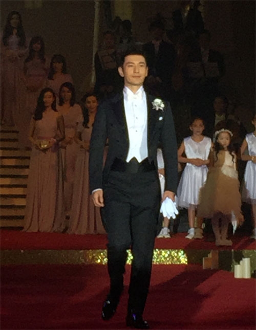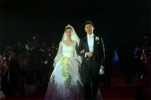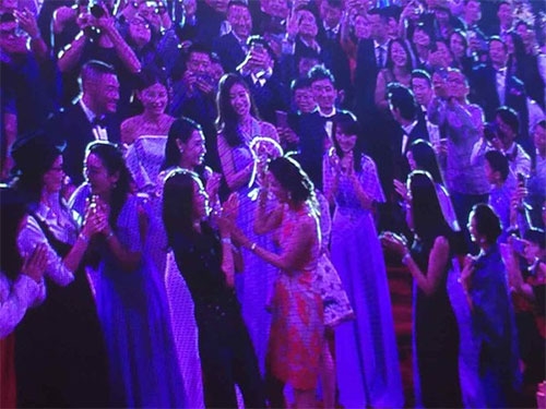 Ngay sau đó, Huỳnh Hiểu Minh đứng sang một bên, Bố Baby dắt tay con gái bước trên thảm đỏ tiến về phía Huỳnh Hiểu Minh. Cả hội trường như nín thở, đợi chờ giây phút Huỳnh Hiểu Minh nắm lấy đôi tay của Baby. Chính tại thời khắc động lòng người này, hai người nhìn thẳng vào mắt nhau cười ngọt ngào. Toàn hội trường đầy ắp tình yêu.