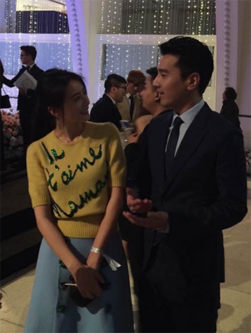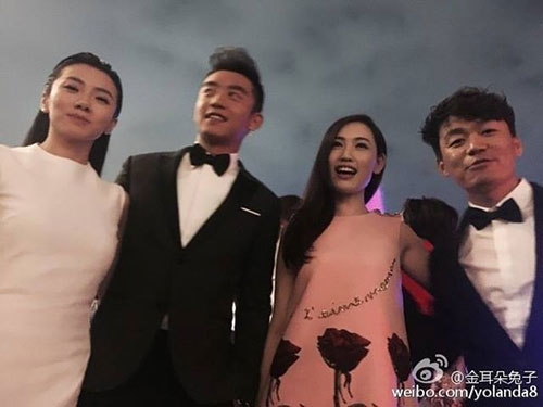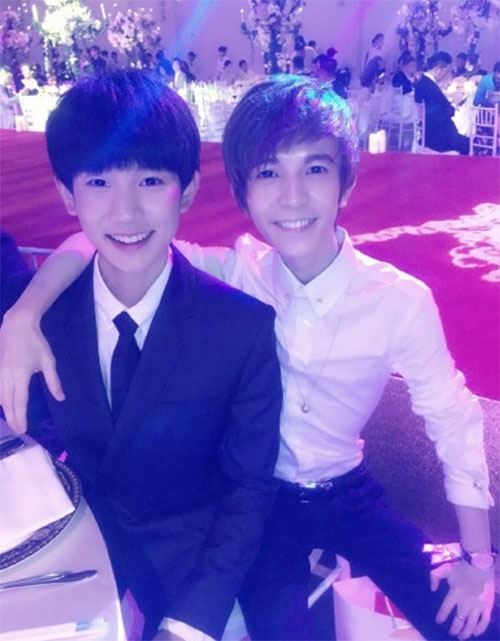 Dàn sao đã bắt đầu ổn định chỗ ngồi, Quách Kính Kinh cùng Vương Nguyên cùng nhau chụp ảnh "tự sướng" khi tiệc bắt đầu.