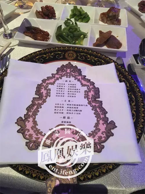 Cặp đôi Huỳnh Hiểu Minh - Angela Baby còn chiêu đãi các phóng viên tham gia vào buổi lễ ngày hôm nay một bữa tiệc buffet với mỗi suất ăn trị giá 500 NDT (tương đương với khoảng 1 triệu 7 VND).