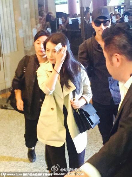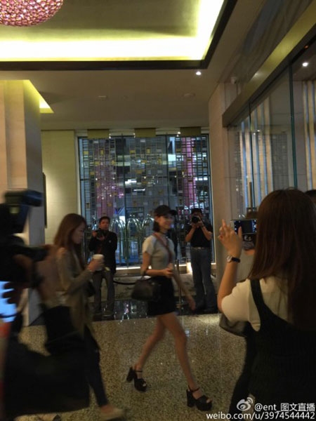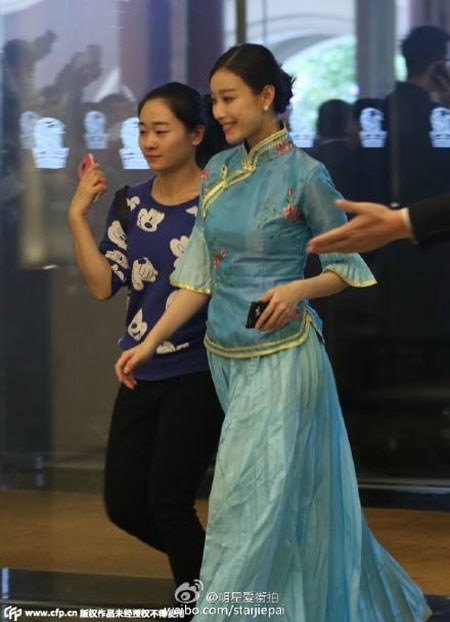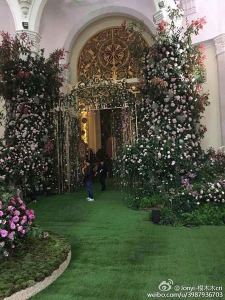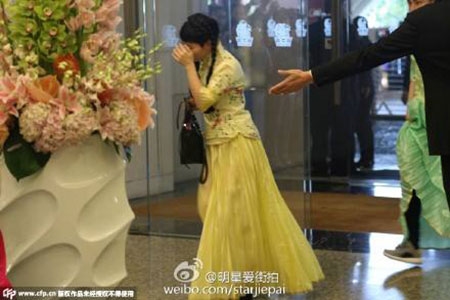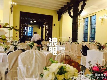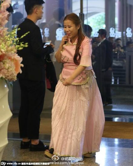 Các ngôi sao lớn lần lượt xuất hiện tại lễ đường chuẩn bị tham dự hôn lễ chính thức vào 5h30 chiều nay. Cao Viên Viên ăn mặc khá giản dị nhưng vẫn nổi bật tại sự kiện