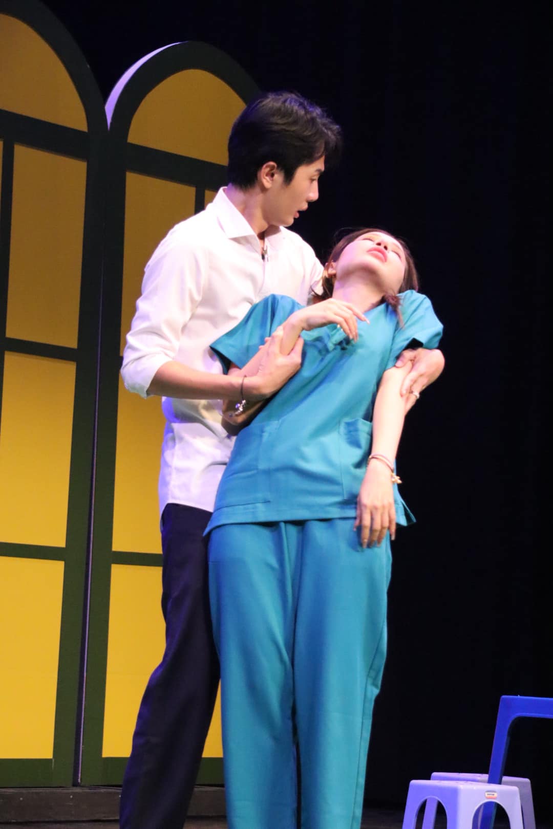 Không chỉ có tương tác thân thiết ngoài đời, khi nhập vai trên sân khấu cả hai cũng có những phân cảnh ngọt ngào. Trong lúc luyện tập với Huỳnh Phương, Khả Như cảm thấy rất áp lực và suýt nữa đã ngất xỉu. Cô từng lên tiếng về việc diễn cùng sân khấu với Huỳnh Phương: "Lúc đầu, chúng tôi diễn bằng kỹ thuật, né tránh đủ kiểu hết. Thấy vậy, đạo diễn Hữu Tiến đã la chúng tôi rất nhiều. Anh bảo cả hai phải hôn thật, nếu không sẽ bị trừ tiền cát-xê. Trên hành trình làm nghề, tôi nghĩ Phương đã hôn rất nhiều người, tôi cũng vậy. Nhưng hai chúng tôi hôn nhau áp lực kinh khủng".
