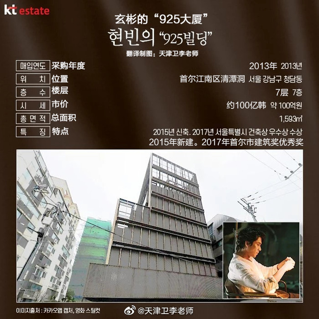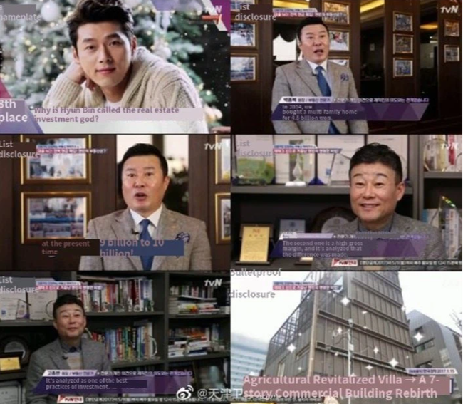 Chương trình cũng chỉ ra rằng hồi năm 2013, Hyun Bin từng mua một khu chung cư chỉ có 4 tầng. Tuy nhiên đến năm 2015, nam diễn viên đã chuyển đổi nó thành cao ốc văn phòng có 7 tầng trên mặt đất và 2 tầng ngầm. Trong đó công ty giải trí của Hyun Bin và Jessica (cựu thành viên SNSD) cũng đặt ở đây.