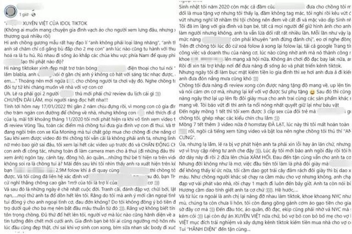 Tối 17/1, một tài khoản có tên H.L bỗng "gây bão" cộng đồng mạng khi đăng bài tố chồng là C. ngoại tình cùng TikToker Gia Thị Linh, khi cả hai vẫn đang là vợ chồng hợp pháp. Cụ thể, Gia Thị Linh cùng chồng H.L thường xuyên đi du lịch cùng nhau và thực hiện các clip review sống ảo, tuy vậy anh này lại nói dối vợ là đi công tác. Đỉnh điểm, "tiểu tam" Gia Thị Linh còn chủ động gửi những clip nhạy cảm của hai người qua tài khoản của chồng H.L.